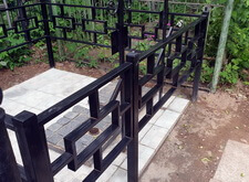 Металлическая ограда и кресты с бетонной плиткой