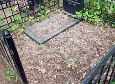 Очередная уборка могилы с классическим прямоугольным памятником. Изначально место захоронения выглядело запущенным, однако гранитная брусчатка, которой был выложен участок, не дала сорной траве заполонить всё вокруг.