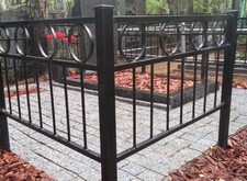 Ограду заменили на новую. Цветник собрали. Оставили зоны для цветов. Заказ сдавали осенью, поэтому решили не сажать цветы в зиму, просто закрыли землю мульчей. Надпись на памятнике освежили, портрет открасили. Очень долго они не потребуют к себе внимания по ремонту. На пол положили брусчатку. По периметру проварили металлическую полосу, с годами брусчатка не разъедется. Подробный фотоотчет ниже.